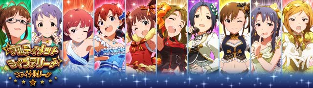 | アルティメットライブ! 秋月律子 アルティメットライブ! 真壁瑞希 アルティメットライブ! 野々原茜 アルティメットライブ! ジュリア アルティメットライブ! 松田亜利沙 アルティメットライブ! 宮尾美也 アルティメットライブ! 三浦あずさ アルティメットライブ! 双海真美 アルティメットライブ! 高山紗代子 アルティメットライブ! 百瀬莉緒 のどれか | チーム別ランキング報酬 | ? | 有限 |